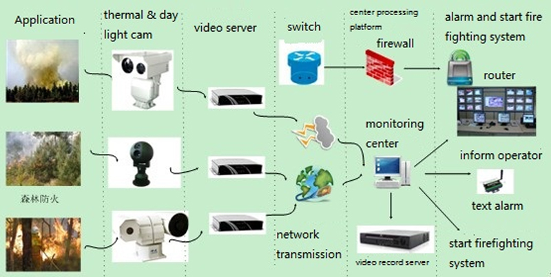 Confíe en su propia iluminación láser avanzada y tecnología de visión nocturna de imágenes térmicas infrarrojas, combínelas con la adquisición de imágenes, la transmisión de red y el sistema de visualización, Foshvision desarrolla un sistema de análisis inteligente de prevención de incendios que puede monitorear las 24 horas. El sistema se basa en monitoreo de video digital y en red .En comparación con el monitoreo de video de red general, es un tipo de aplicación inteligente de gama alta. El sistema de análisis inteligente de incendios puede realizar un trabajo continuo desatendido, realizar automáticamente el análisis y el juicio de la información de la imagen de video; Descubra el humo y el fuego inusuales a tiempo, realice el análisis de la alarma de incendio y el comportamiento del fuego de la manera más rápida y mejor; ayude a los bomberos a manejar la crisis de incendios de manera efectiva y al máximo para reducir los falsos positivos y los fenómenos de omisión; Al mismo tiempo, también puede ver la imagen de la escena en tiempo real, ordenar y enviar la lucha contra incendios directamente de acuerdo con las imágenes visuales.